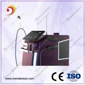 2) Fiber: φ1,5 mm*3m, tjockare fiber gör att fiber är mer hållbar och starkare. Energiöverföringen genom den optiska fibern är mer stabil, vilket säkerställer den bästa terapeutiska effekten. Infraröd inriktning av strålen gör behandlingen mer exakt.