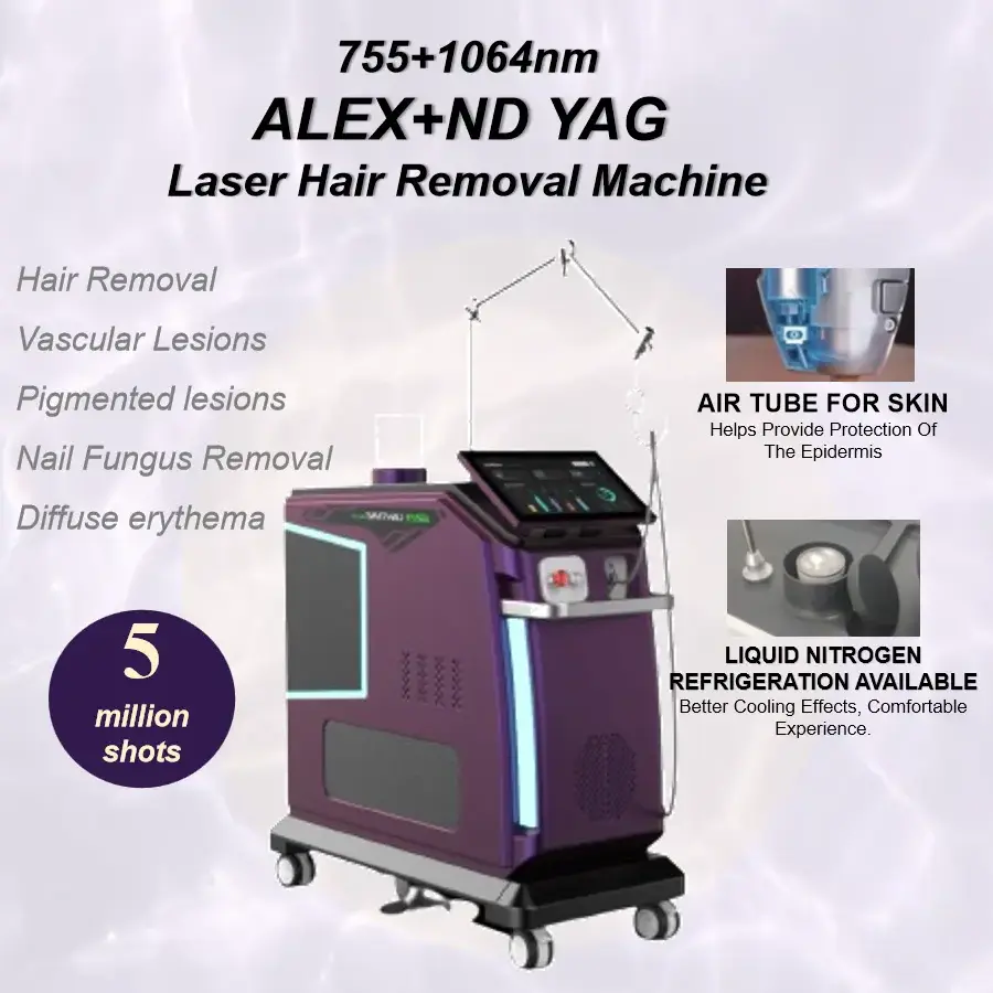 755nm 1064nm Dubbelvåglängd långpuls epileringsmaskin