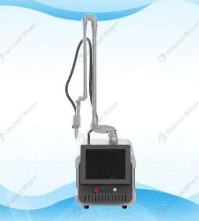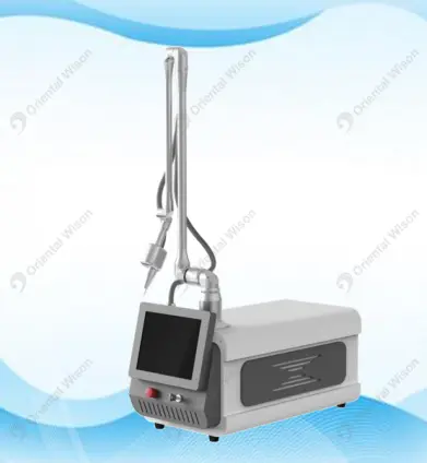 2. Detta lätta system levererar exakt CO2 -laserenergi i ett fraktionellt mönster och behandlar endast en bråkdel av huden. Denna metod främjar snabbare läkning än traditionella lasrar. Det är idealiskt för känsliga områden och populärt för dess effektivitet och minskade patientåtervinningstid.